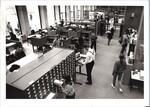 A view from above of the first floor of the library in the Joralemon building.